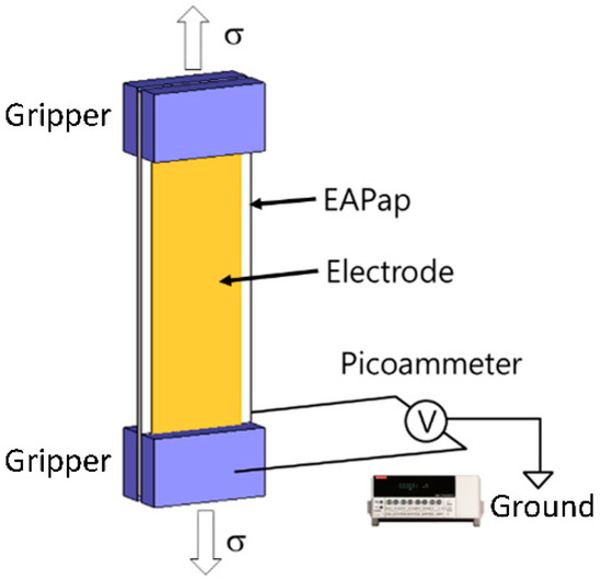 Figure 2 shows the schematic of piezoelectric charge constant measurement. Note that it is important to remove all space charges which accumulated during the fabrication beforehand by grounding. The amount of induced charge was calculated by integrating the measured current. The in-plane piezoelectric charge constant then is calculated as