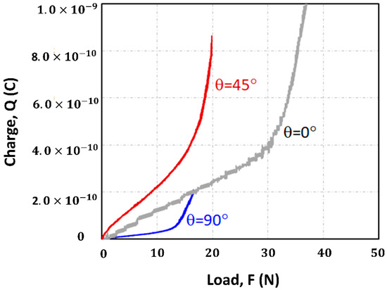 Figure 7 shows the measured induced charge as a function of load. From the graphs, it is clear that the electric charges in elastic and plastic regions have different charge/load slopes. The electrical charges in a linear elastic region did not dramatically increase as the load increased. The induced charges in the plastic region, however, rapidly increased as the load increased. The film may have the strong plastic region dependency on accumulating electric charges. However, we use the induced charges in the linear elastic region to calculate piezoelectric charge constants because the typical piezoelectric charge constant is defined in the linear region.