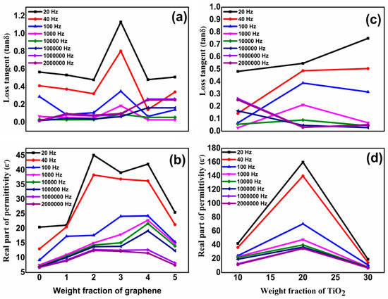 Ishaq, S.; Kanwal, F.; Atiq, S.; Moussa, M.; Azhar, U.; Losic, D. Dielectric Properties of Graphene/Titania/Polyvinylidene Fluoride (G/TiO2/PVDF) Nanocomposites. Materials 2020, 13, 205. https://doi.org/10.3390/ma13010205