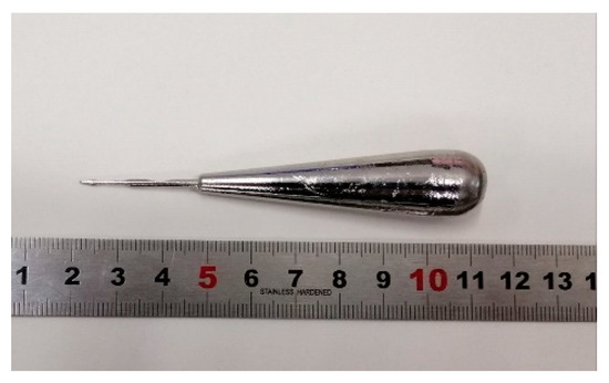 An as-cast conical sample for determining the critical diameter of different alloy compositions.
