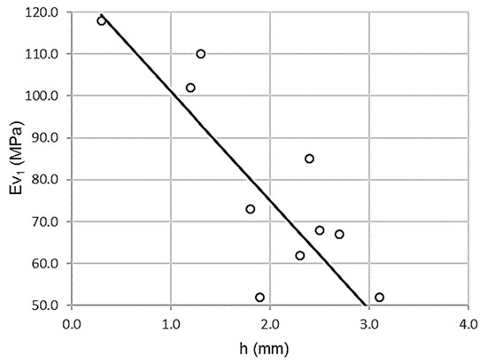 Ev1 = 127.155 − 26.062 h R2 = 0.749