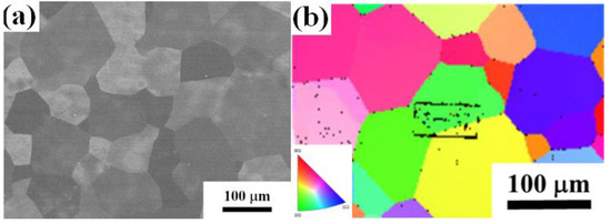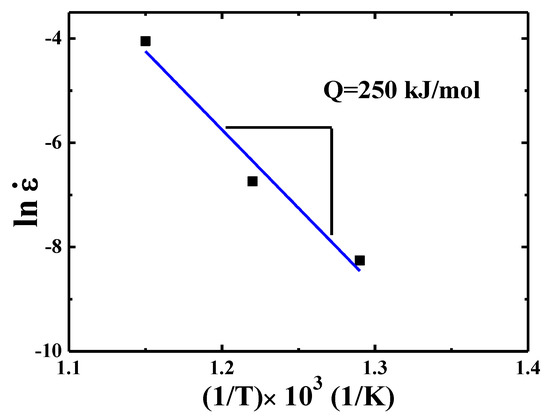 where B and R are a pre-coefficient related to grain size and gas constant, respectively, as presented in Figure 7. The Q value is 250 kJ/mol for {110} grains over 500–600 °C.