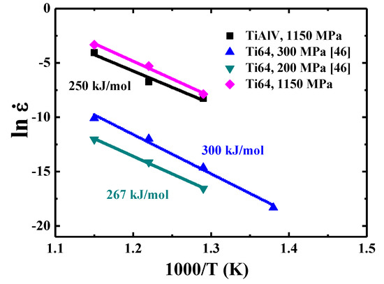 Strain rate versus 1000/T for {110} grains in TiAlV LD-MEA.