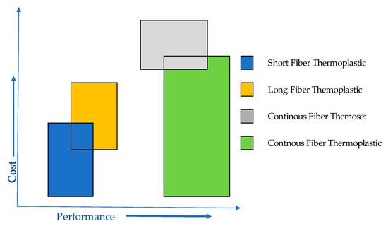Currently, the most commonly used thermoplastic materials are reinforced with staple fibers, such as short fiber or glass balls, mainly [6,7,8]. However, there is great potential to develop the use of high-performance continuous fiber-reinforced thermoplastics.