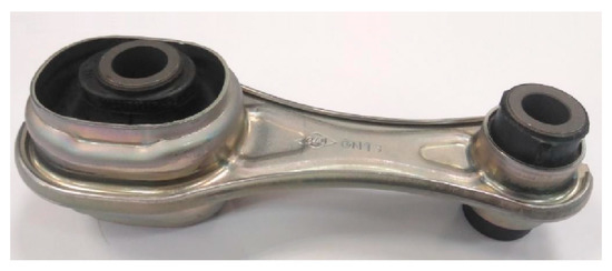 There are automotive components, such as “torque restrictors” (see Figure 6), in which the rigid part of the piece adds great value to its dynamic behavior. This type of parts generally work with tension stress-compression stress or torsion and, given their geometry, it is easy to replace steel or aluminum with CFRTP, in case it provides better performance. Therefore, if the dynamic results of the CFRTP are positive, their use would provide a great added value in the dynamic behavior that would result in a car with greater comfort and lower consumption, without sacrificing safety or recycling.