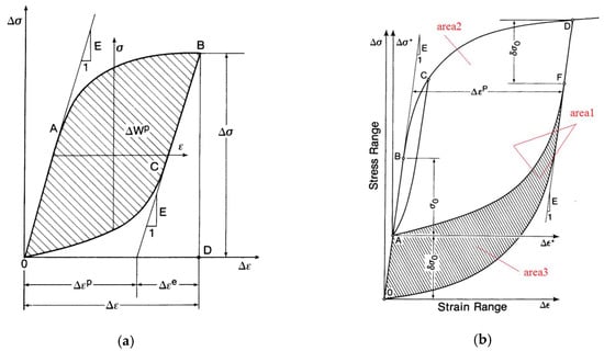 According to Figure 5a, the plastic strain energy equation with the hysteresis loop area of the Masing behavior material is first proposed by A.A. Griffith [].