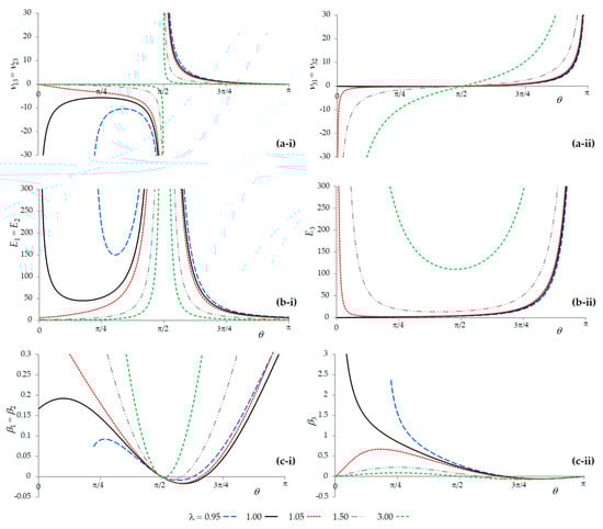 The expressions for the Poisson’s ratio νij in the Oxi–Oxj plane for stretching in the Oxi direction, theoretically valid for θf < θ < π/2 and π/2 < θ < π (see discussion below)—in analogy to the work of Grima and Evans (2000) []—in the limit of zero strain for a given value of θ may be obtained as follows: