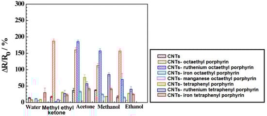 - Penza, M. Carbon nanotube films as a platform to transduce molecular recognition events in metalloporphyrins. Nanotechnology 2011, 22, 125502. [Google Scholar] [CrossRef] [PubMed]