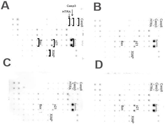 TissueLyser LT (Qiagen, Hilden, Germany) was used to prepare protein extracts. Protein concentrations of tissues lysates were determined using the BCA Protein Assay (Thermo Scientific). The levels of multiple apoptosis protein were examined by the Human Apoptosis Antibody Array - Membrane (ab134001, Life Technologies), prepared for the simultaneous detection of 43 proteins. The following targets could be detected by this array.