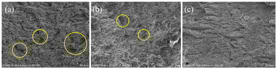 SEM images of tensile specimens under different hydrogen charging time: (a) Without hydrogen charging; (b) Hydrogen charging for 24 h; (c) Hydrogen charging for 48 h.