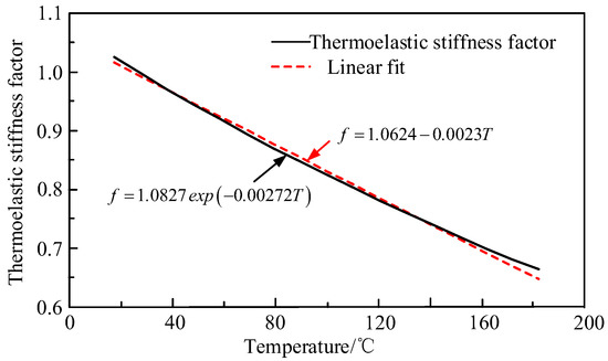 13], the exponential function was used to express the thermoelastic stiffness coefficient of an epoxy resin base, and linearly fit it, as shown in