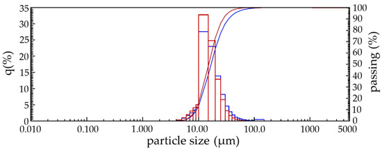 Figure 1) by laser diffraction showed that its particle size composition is 8 to 30 microns, and after quenching the resulting material contains mainly particles with sizes from 6 to 20 µm. The average geometric particle size of lime dust before and after quenching is 16.7 and 12.9 µm, respectively. Considering such a small size of particles of lime dust, it can be argued that the destructive effect of calcinated particles on the properties of products made on its basis will be minimal.