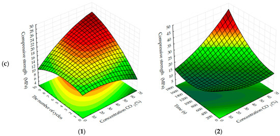 37] checked the mechanical properties, precisely the compressive strength of the concrete, which was subjected to accelerated carbonation curing. Their research showed that when the concrete was exposed to a pressure of 414 kPa for 10 h, this resulted in an increase in compressive strength. This value increased by 114% compared to the reference sample. In study [