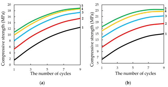 The study of the influence of the number of cycles in the dynamic method of carbonation on the change in compression strength of testing samples, presented in