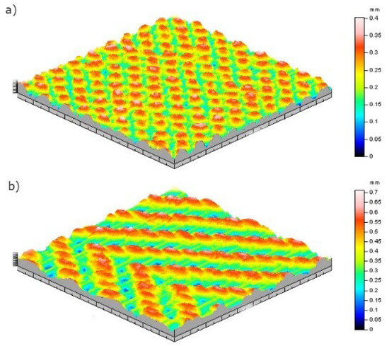 (a) Plain and (b) twill 2/2 structures visualization through profilometry method [5].