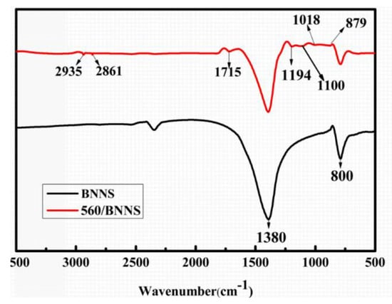 Figure 5 shows the FT-IR spectra of BNNSs and 560/BNNSs.