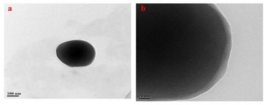 The 560/BNNS was analyzed by TEM []. It can be seen from Figure 7a that a thin film is observed on the boron nitride nanosheet modified by the silane coupling agent. In addition, Figure 7b shows a film, which is a film layer of about 5 nm formed by KH560 chemical bonding with dopamine on the surface of boron nitride, and KH560 dehydration condensation.