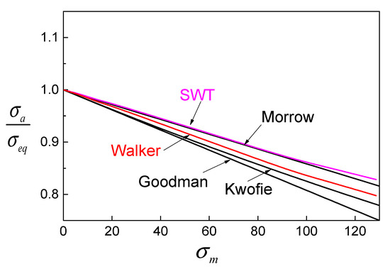 According to Equation (6), the modifications are mainly made on the fatigue strength coefficient using the mean stress as