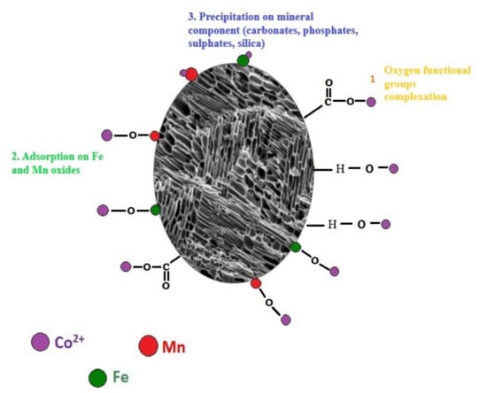 - The dominant mechanisms of cobalt sorption on biochar surface are related to oxygen functional groups present on the biochar surface, mainly carboxylic and hydroxyl groups.