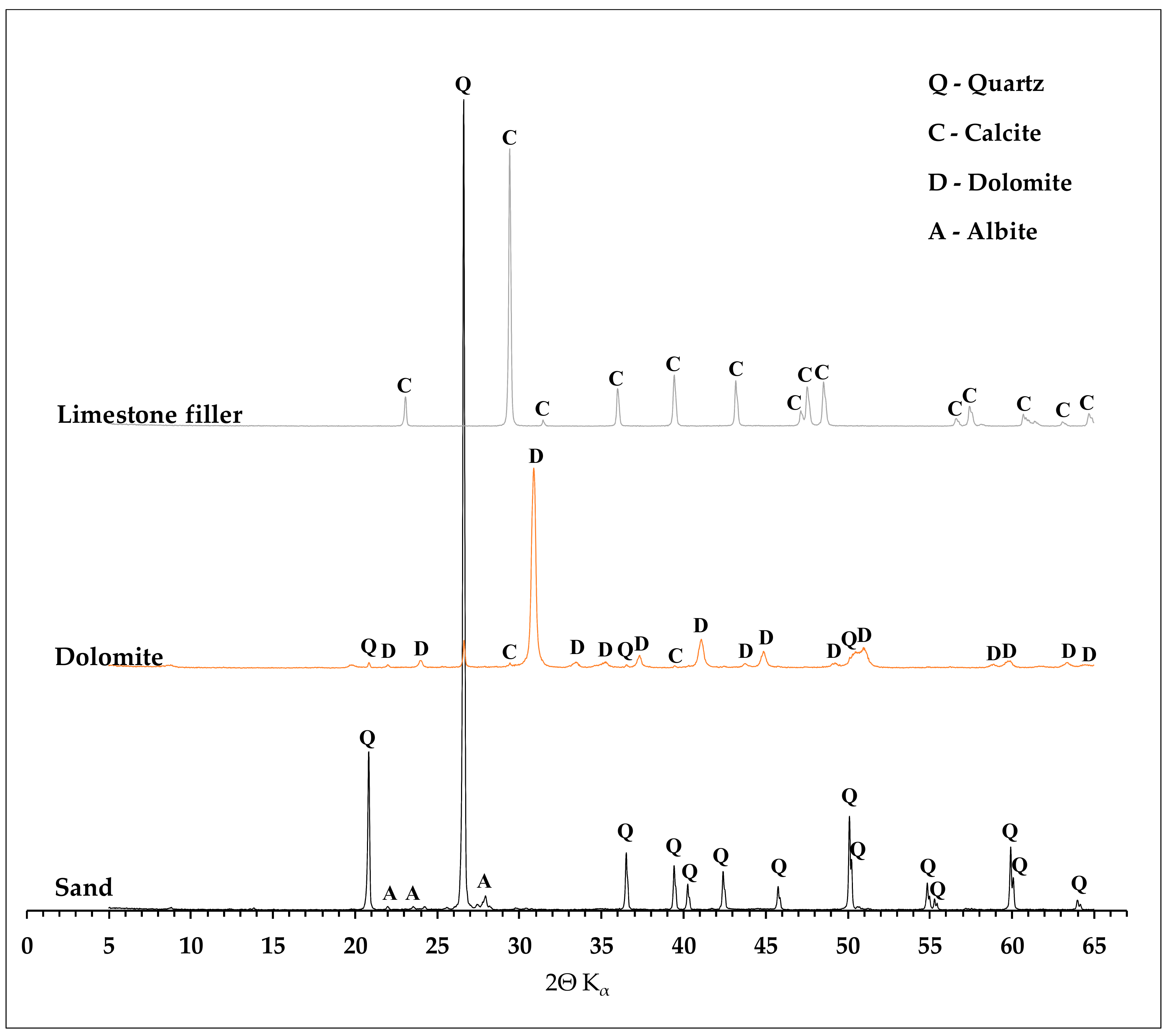 | Dolomite (% wt) | Limestone Filler (% wt) | Sand (% wt) | |