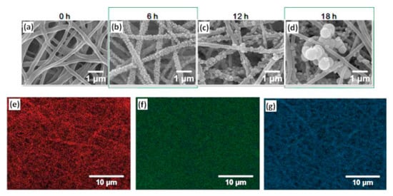 - Hou, J.; Wang, Y.; Xue, H.; Dou, Y. Biomimetic Growth of Hydroxyapatite on Electrospun CA/PVP Core⁻Shell Nanofiber Membranes. Polymers 2018, 10, 1032. [Google Scholar] [CrossRef]