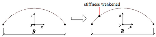 In the designed VUMAT subroutine program, when the failure of one fiber is triggered, the elastic modulus of this fiber will be set as zero. When all the fibers in a beam element fail, that beam element is judged as having failed; thus, this beam element will be deleted in the program. Therefore, the process of the collapse of the dome can be simulated. After an element is deleted due to failure, the explicit dynamic analysis based on the central difference method is performed, which enables the accurate capture of the response of the dome. For a detailed explanation of the numerical algorithm, please refer to Zhou et al. [36].