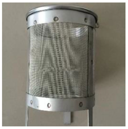 The surface of the fiber and the fiber itself can absorb a certain amount of asphalt binder in the asphalt mixture. The oil absorption rate can affect the properties of asphalt mixtures [28]. Within some range, the higher the absorption rate, the less likely the fiber-reinforced asphalt mixture will suffer from pavement distress such as oil-bleeding or ruts at high temperatures. Therefore, the asphalt absorption capacity of fibers is an important index to evaluate the performance of asphalt mortar or mixture. In this paper, the oil absorption rate of basalt fiber (BF) and lignin fiber (LF) is tested by basket leak test. The basket used in the test is shown in Figure 6; the diameter of the basket leaking hole is 0.315 mm, and the weight of the basket is 200 grams.