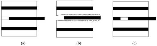 The composition of fiber-reinforced asphalt is fiber and asphalt binder. When they mix with each other, they will bond together due to the action of molecular forces and chemical bonds. The mechanisms of these actions are very complex, but they will contribute to the strengthening of the asphalt [36]. The failure model of the fiber-reinforced asphalt could be summarized into three typical situations, which are shown in Figure 18. Figure 18a shows the failure situation that the fiber-reinforced asphalt is broken due to the slide of the fiber from the asphalt, which is mainly because that the bonding between the fiber and the asphalt is not strong enough to hold the pull-out force. This mode can be classified as the interface failure mode [37]. Figure 18b shows that the fiber is wrapped by the asphalt and pulled out along with some of the asphalt, and this can be viewed as the matrix failure mode [37]. In this situation, the bonding between the fiber and the asphalt is strong enough to hold the pull-out force. The failure situation shown in Figure 18c presents that the fiber is fractured when it is being pulled out from the asphalt, and this is mainly because the fiber could bond well with asphalt, but the pull-out force is bigger than the fracture strength of the fiber itself. This phenomenon can be ascribed to the weak strength of the fiber or the strong adhesion between the fiber and the asphalt matrix. Generally, it could be concluded that the failure model of the fiber-reinforced asphalt will be affected by the bonding situations between the fiber and the asphalt and the fracture strength of the fiber itself.