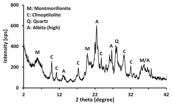X-ray diffraction (XRD) pattern of the calcium bentonite used in this study.