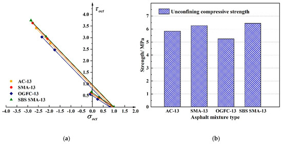Asphalt pavement is currently the most widely used high-grade pavement structure form around the world [1], for its performance, convenience in construction and maintenance, evenness, and comfort when driving. As the main road material, the mechanical properties of asphalt mixtures, especially direct tensile, uniaxial compression, and confining triaxial strength characteristics are quite important parameters for the design of mixture composition and the combined design of asphalt pavement structures [2]. Asphalt mixtures strength parameters are important parameters for pavement design [3]. Therefore, it is of great significance to study the factors affecting the strength of asphalt mixtures [4] and put forward corresponding control measures to ensure the quality and durability of asphalt pavement [5,6,7].