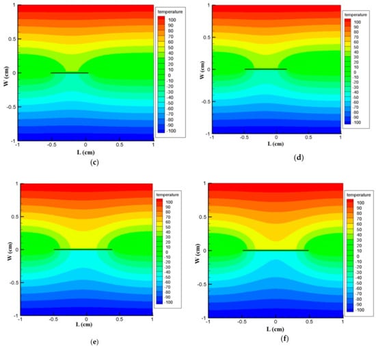 4.2. Examples on Thermoelectric Plate with Stationary and Moving Crack