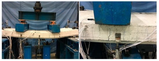 The spreader beam and loading arrangement is shown in Figure 5. A roller support and a pin support were supported at both ends of each slab. The load was linearly set up by a hydraulic jack of capacity 500 kN and applied in a force control manner. A spreader beam with two transverse beams was placed on the top surface of specimens to transfer loading.