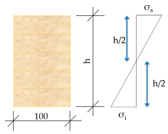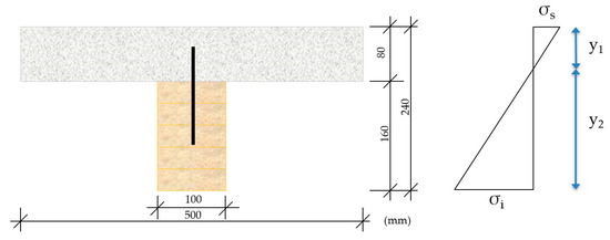Stress state of the composite wood–mortar section.