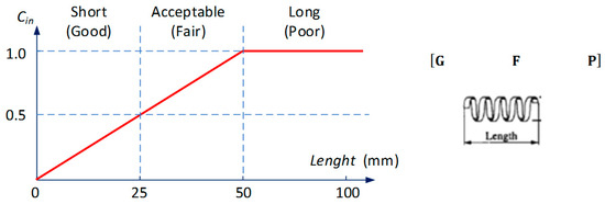 The actual chip can be ranked into three different grades (good, G, fair, F and poor, P), representing the level of chip breakability. The chip breakability index, Cin (Equation (3)), is calculated in the range from 0 to 1. The classification has been adopted for the length of chips (Lch):