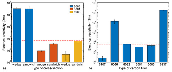 - Huang, J.-C. Carbon black filled conducting polymers and polymer blends. Adv. Polym. Technol. 2002, 21, 299–313. [Google Scholar] [CrossRef]