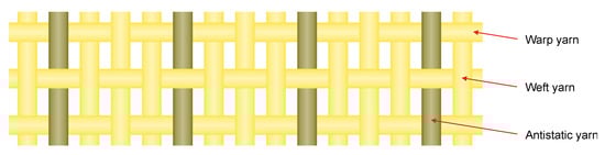 - European Standard. Protective Clothing—Electrostatic Properties—Part 5: Material Performance and Design Requirements; DIN EN 1149-5; Beuth Verlag: Berlin, Germany, 2008. [Google Scholar]