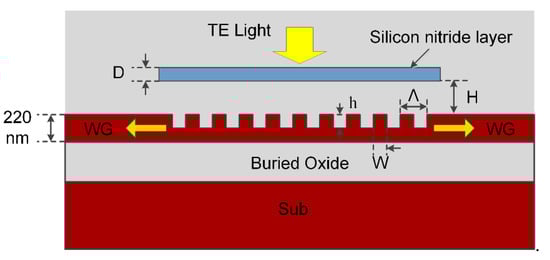 3.1. Design of a Vertical Grating Coupler with Si3N4 Layer