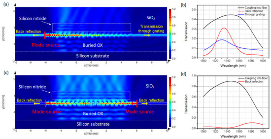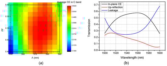 - Zaoui, W.S.; Rosa, M.F.; Vogel, W.; Berroth, M.; Butschke, J.; Letzkus, F. Cost-effective CMOS-compatible grating couplers with backside metal mirror and 69% coupling efficiency. Opt. Express 2012, 20, B238–B243. [Google Scholar] [CrossRef] [PubMed]