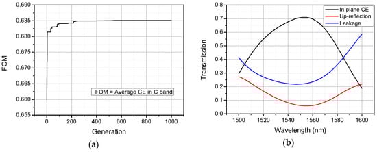 - Michaels, A.; Yablonovitch, E. Inverse design of near unity efficiency perfectly vertical grating couplers. Opt. Express 2018, 26, 4766–4779. [Google Scholar] [CrossRef]