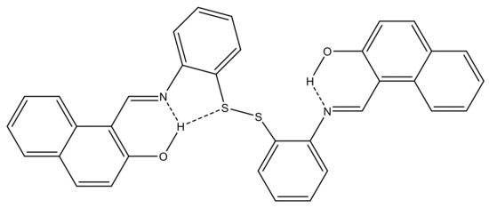 2.2. Synthesis of 1,1′-(-((disulfanediylbis(2,1-phenylene))bis(azaneylylidene))bis(methaneylylidene))bis(naphthalen-2-ol) (ATNA)
