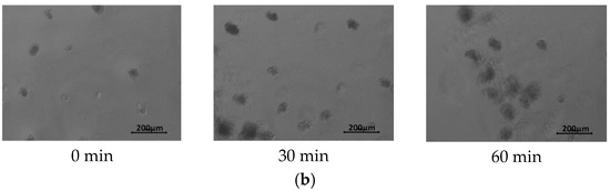 All of the obtained matrices underwent dissolution within several minutes when placed in water at 20 °C (below TCP). The solution after the dissolution of the matrices exhibited a TCP of 27 °C (Figure 1).