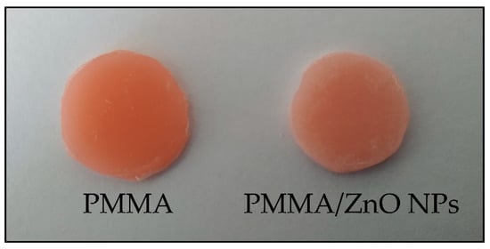- Popović, D.; Bobovnik, R.; Bolka, S.; Vukadinović, M.; Lazić, V.; Rudolf, R. Synthesis of PMMA/ZnO nanoparticles composite used for resin teeth. Mater. Tehnol. 2017, 51, 871–878. [Google Scholar] [CrossRef]