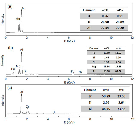 EDS results of 5A90 as-cast alloy in the SEM images. (a) Point A; (b) Point B; (c) Point C.