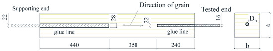 As is well-known, joints or connections are important aspects of timber structures [2,3]. Among the various types of joints, the glued-in rod joint shows excellent structural performances, with a pronounced bearing capacity and considerable slip stiffness, and it can be applied to high-rise and large-span timber structures [4,5,6]. It has been demonstrated that the glued-in rod/rebar joints showed superior feasibility and mechanical properties while they was applied to prefabricated beam-to-column connection [7,8].