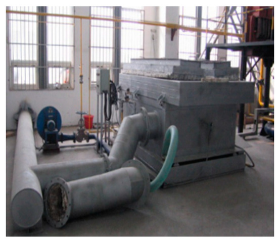 Fire tests for the glued-in rod timber joints were carried out in a small multipurpose fire-test furnace, as shown in Figure 6. The chamber size of the furnace was 1.8 m × 1.2 m × 0.5 m, and two thermocouples were employed to obtain the temperature inside the furnace. The practical furnace temperatures followed the ISO 834-1 [54] standard curve in the tests. The measurement frequency of the collection devices was two times per minute.