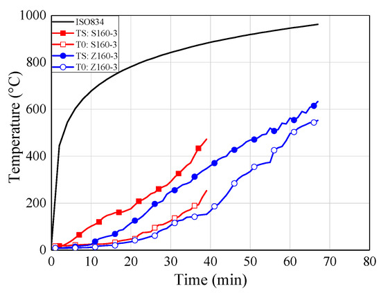 Notably, for the specimens Z200-3-3 and SF160-3-3, an unanticipated breakage of the rod occurred. Therefore, they were not considered when calculating the average values of the fire resistance period within those groups.