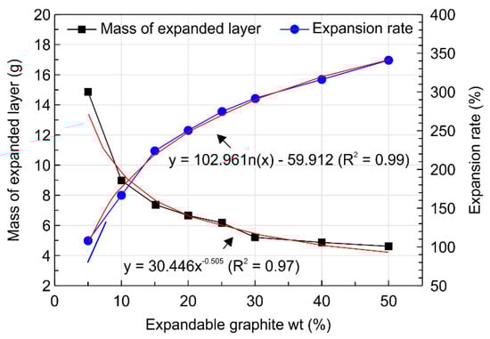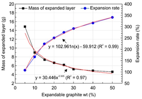 Variations in the expansion rate and mass of expanded layer with expandable graphite content.