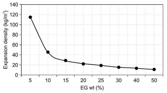Variation in expanded graphite density with the expandable graphite content.