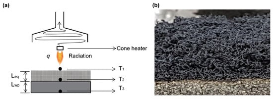 (a) Schematic of heat flow in cone calorimetry experiment and (b) image of expanded layer.