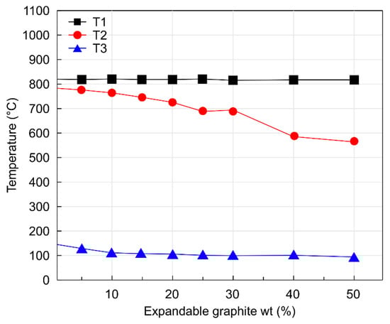 Temperature variations in the combustion experiment as a function of expandable graphite content.